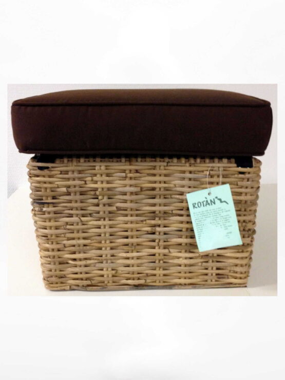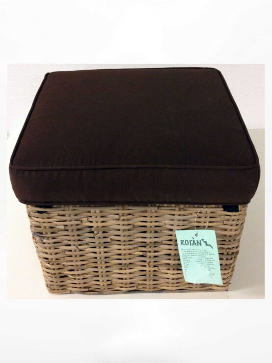 Hocker Rotan met dik bruin kussen